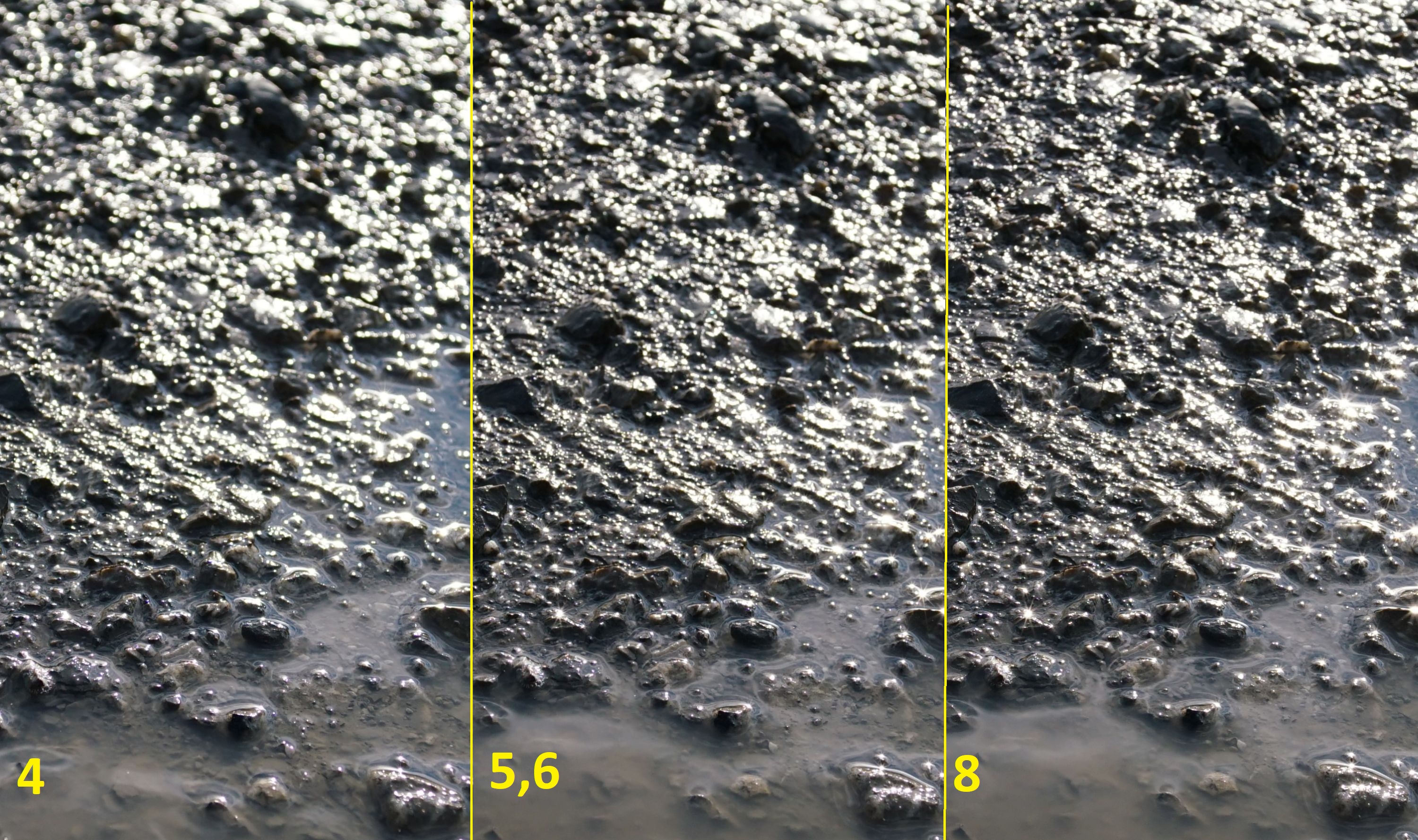 Crops aus der Mitte, die Blendenwerte stehen im Foto: