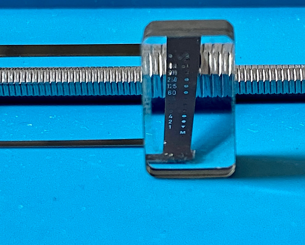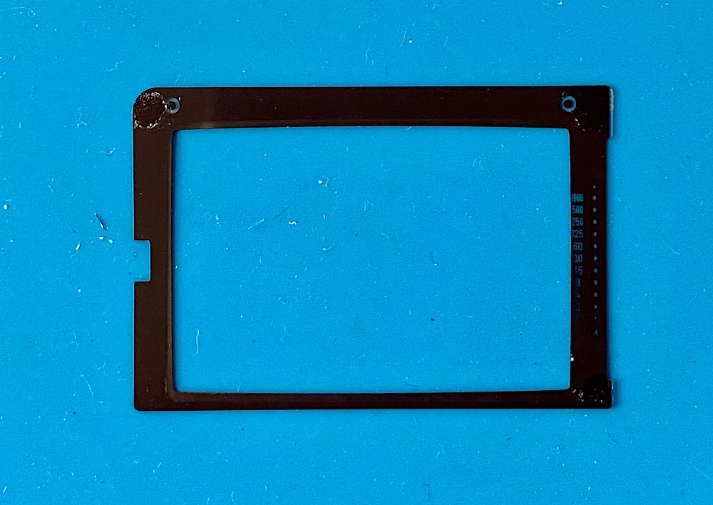 Die Maske mit der Verschlusszeitenskala (rechts), die über der Einstellscheibe angebracht war.