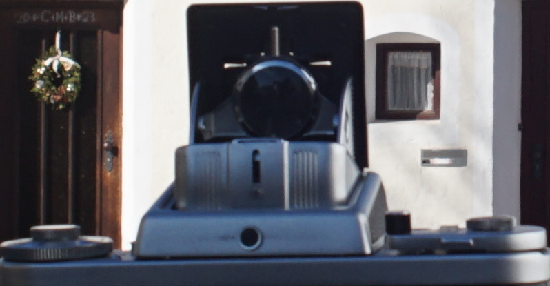 Auch hier auf den Indexstrich der Meterskala scharfgestellt, dann auf die Seriennummer, dann in die Mitte, Blende ermittelt über Schärfentiefenskala, eine höher eingestellt, abgedrückt, fertig.