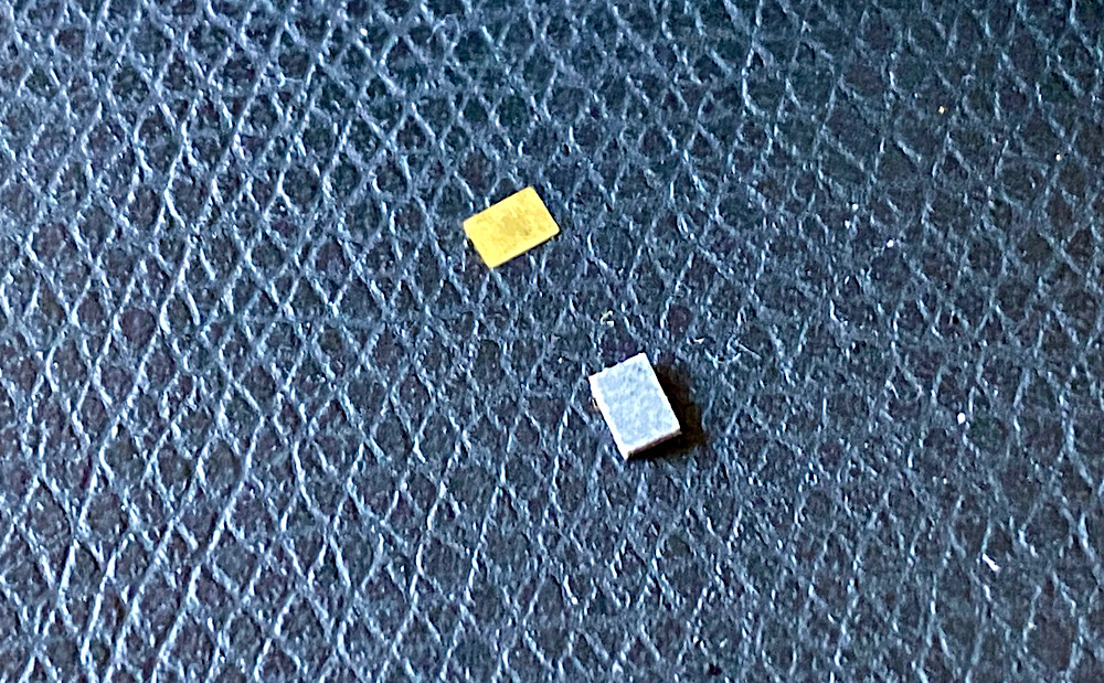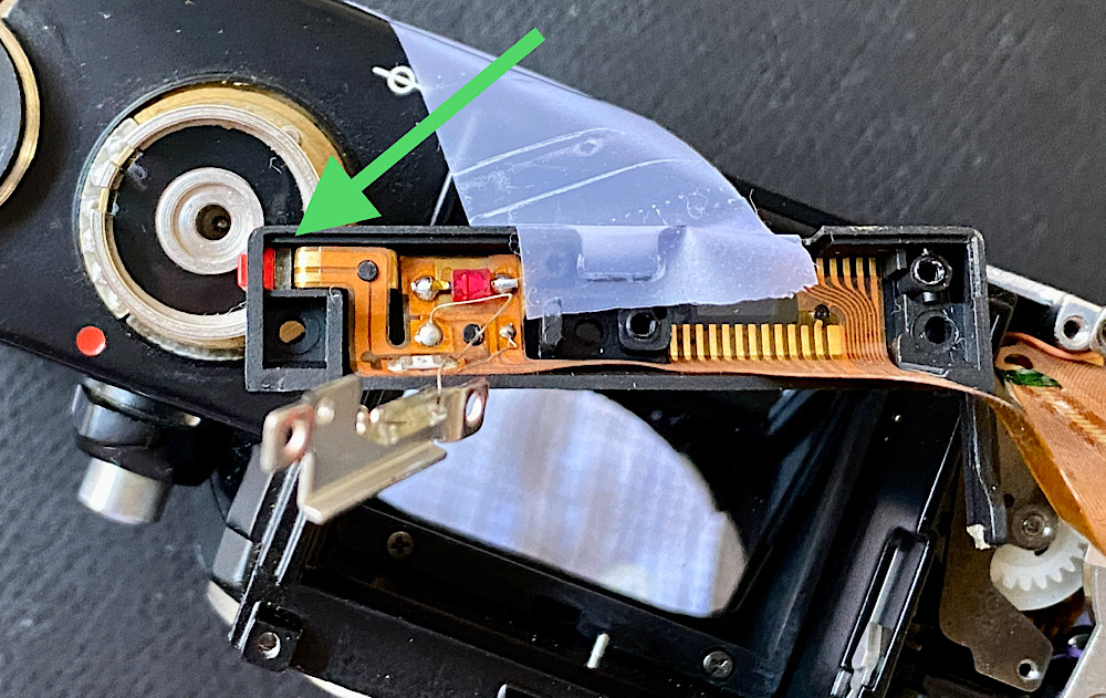 Fallfreudig das piezoelektrische Element (unten) mit Kontaktplatte für die Sucherbeleuchtung:
