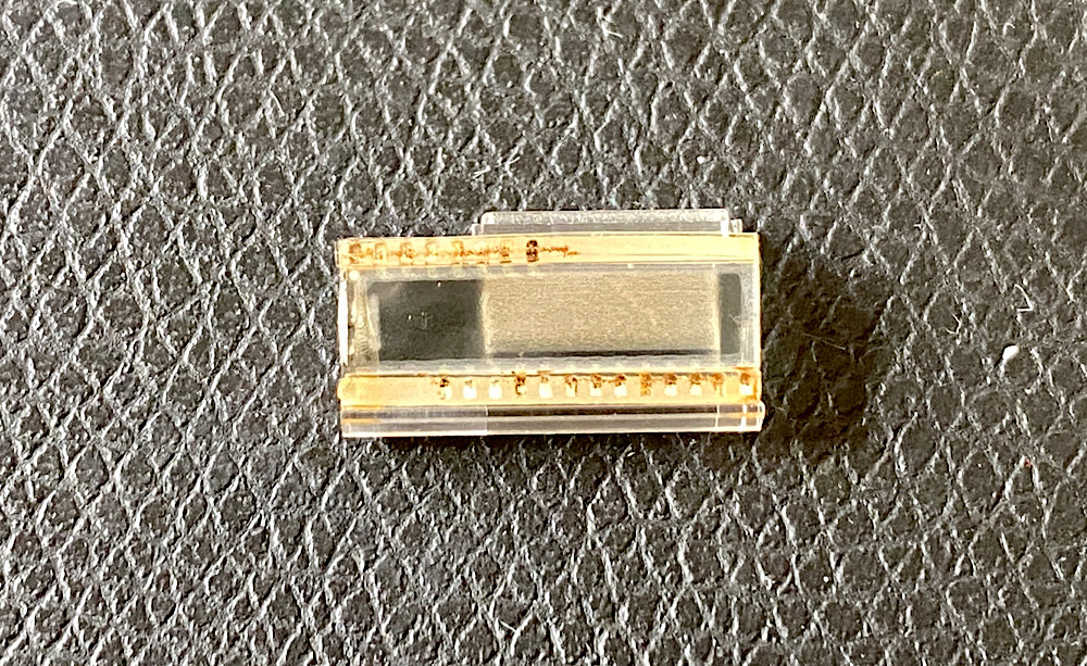 Das defekte LCD mit offenkundigen Zerfallserscheinungen an den Kontaktreihen: