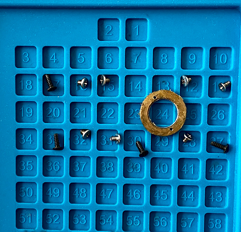 Nach längerer Suche sind alle Schrauben gelöst, um den Verschluss abnehmen zu können.
