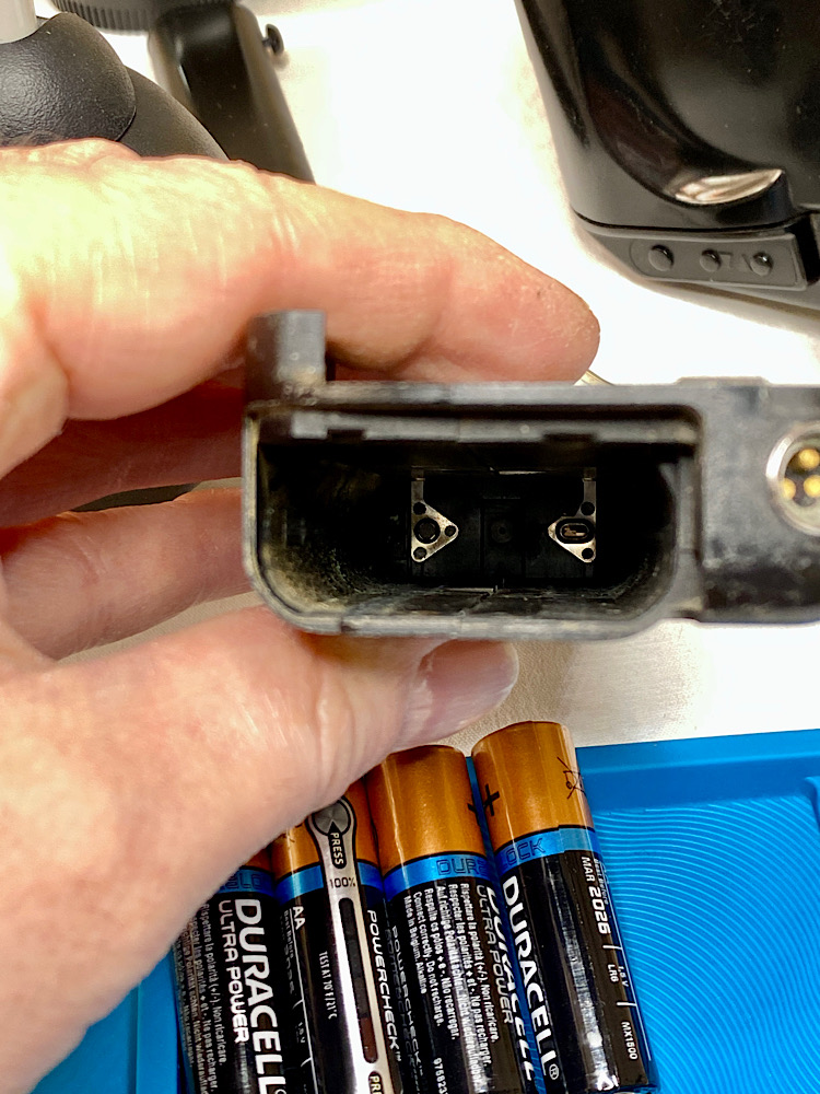 Am Boden des Fachs sind die beiden Batteriekontakte zu sehen - die gewohnte Ansicht: