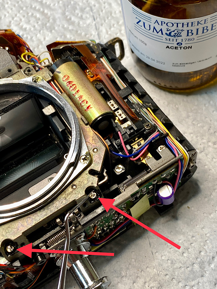 Auch der Spiegel-Magnet ist nur nach massiver Demontage der Kamera erreichbar.