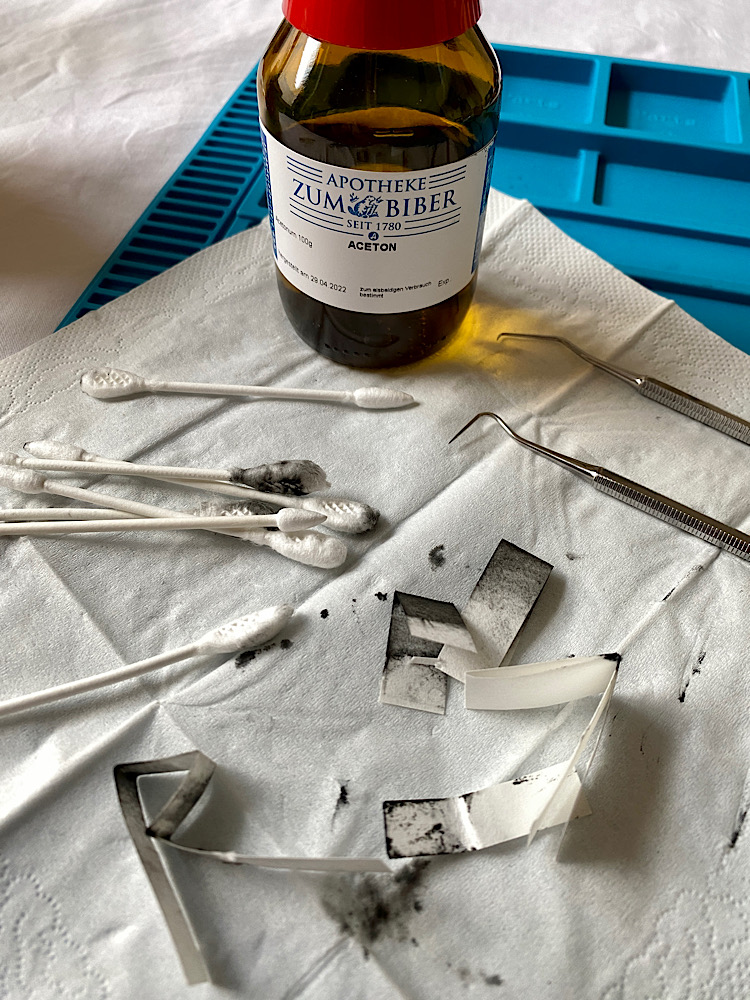 Sauerei pur, anschließende Reinigung der Werkzeuge mit Aceton