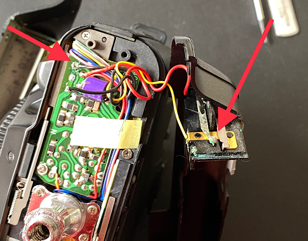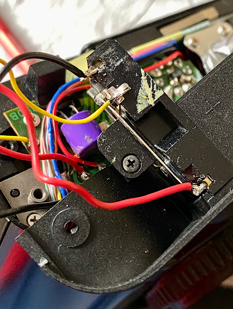 Das schwarze Massekabel hatte sich von seiner Lötstelle im Batteriefach gelöst.