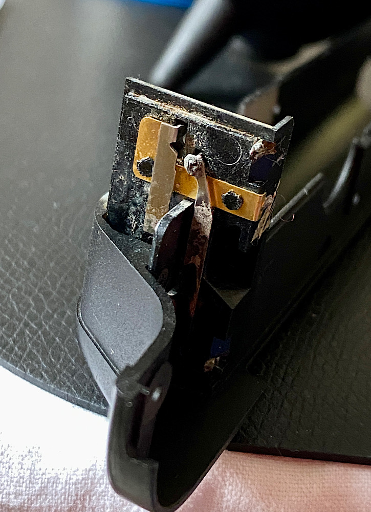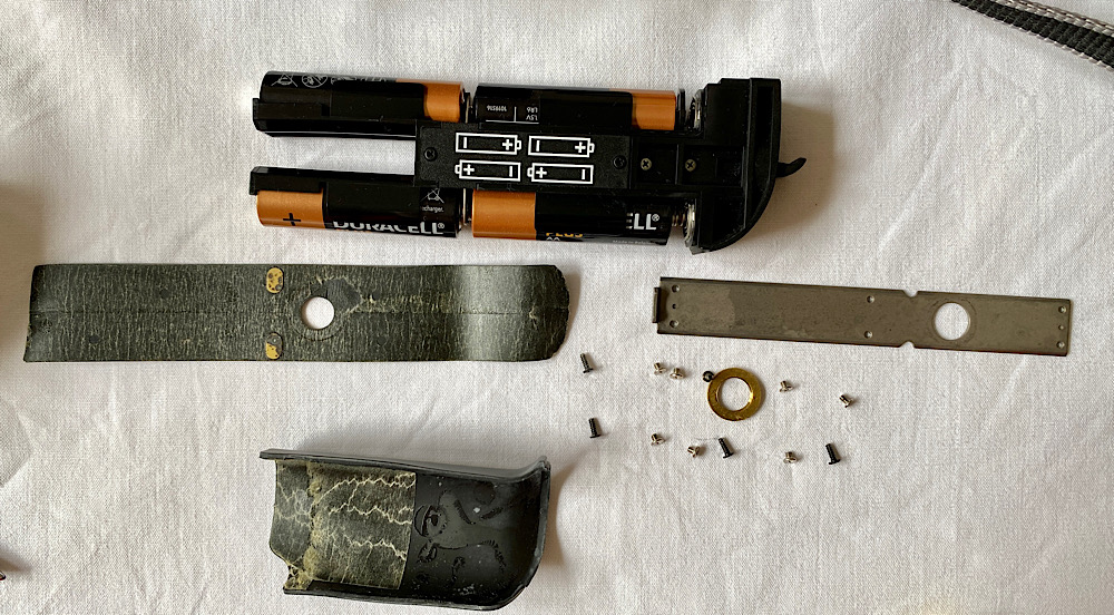Der Verdacht erhärtete sich, als ich grüne Säurereste am Boden des Batteriefaches entdeckte. Nicht viel, aber verräterisch ;-)
