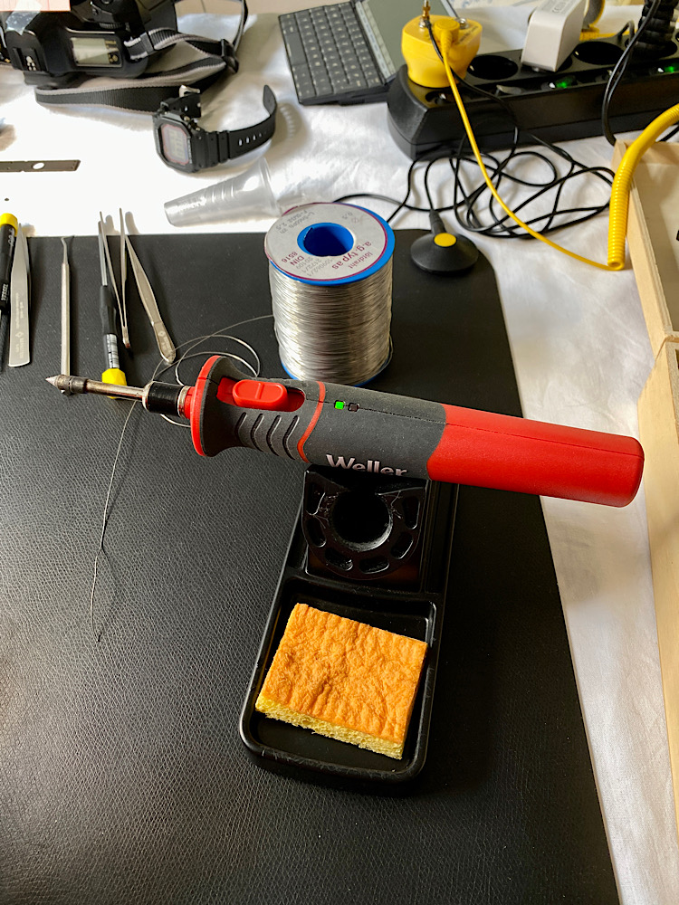 Um den Kabelstrang links von der Lötarbeit fernzuhalten, fixierte ich ihn mit Loctite etwas weiter weg.