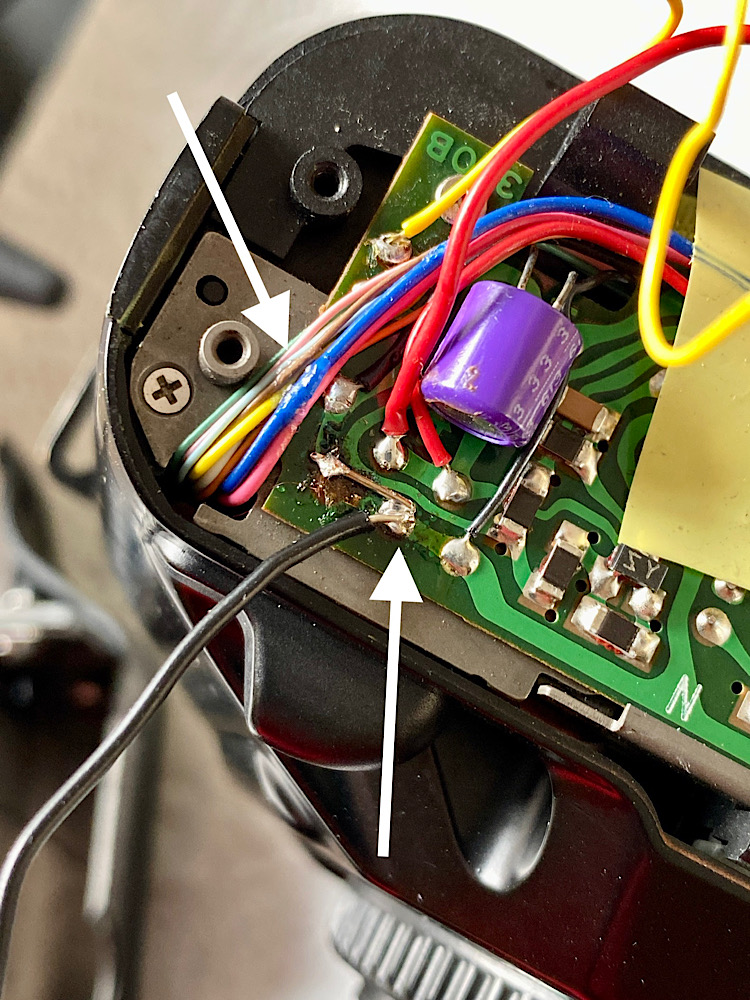 Ich musste daher die Stelle mit Draht überbrücken, um das Massekabel anlöten zu können.