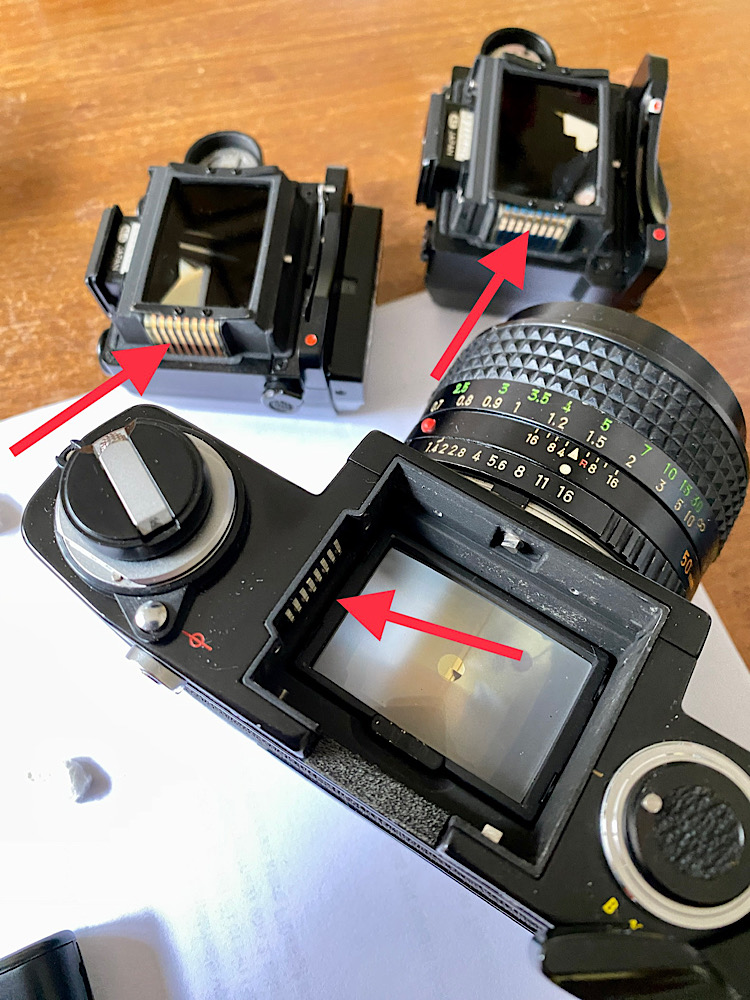 Die Wechselsucher kommunizieren über elektronische Kontakte mit der Kamera: