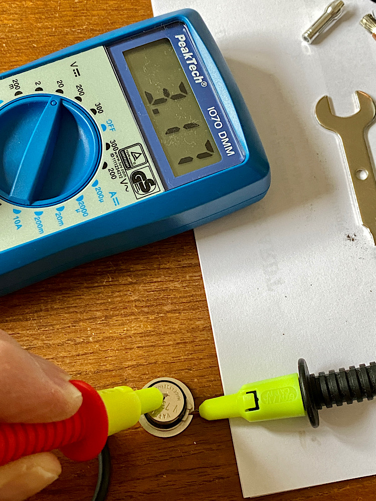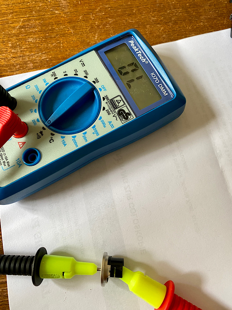 Eine Prüfung auf Durchgang mit dem Multimeter zeigte, dass es an manchen Stellen keinen Stromfluss gab.