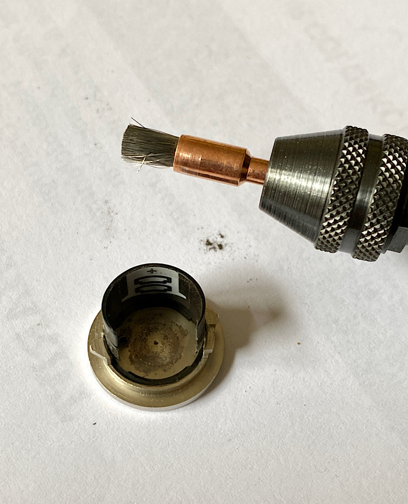 Zur Sicherheit reinigte ich noch alle Kontakte an den Suchern und im Suchergehäuse der Kamera mit Elektronikreiniger. Die Wattestäbchen waren danach grau. Also das Richtige getan.