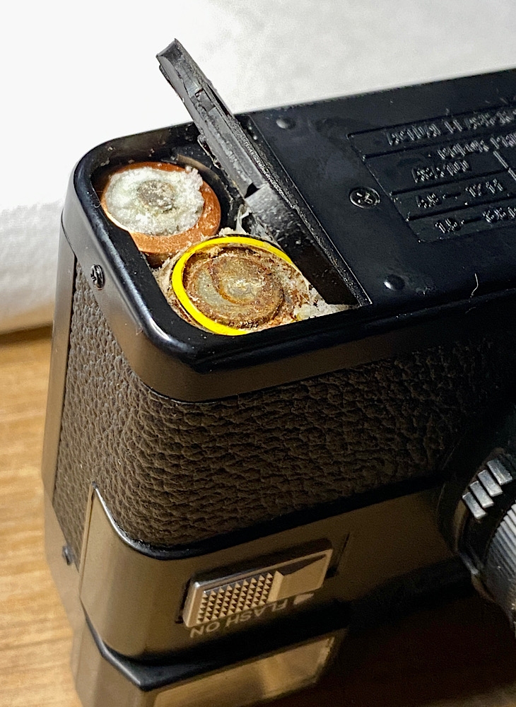Ausgelaufene AA-Batterien in einer Minolta High-matic S2