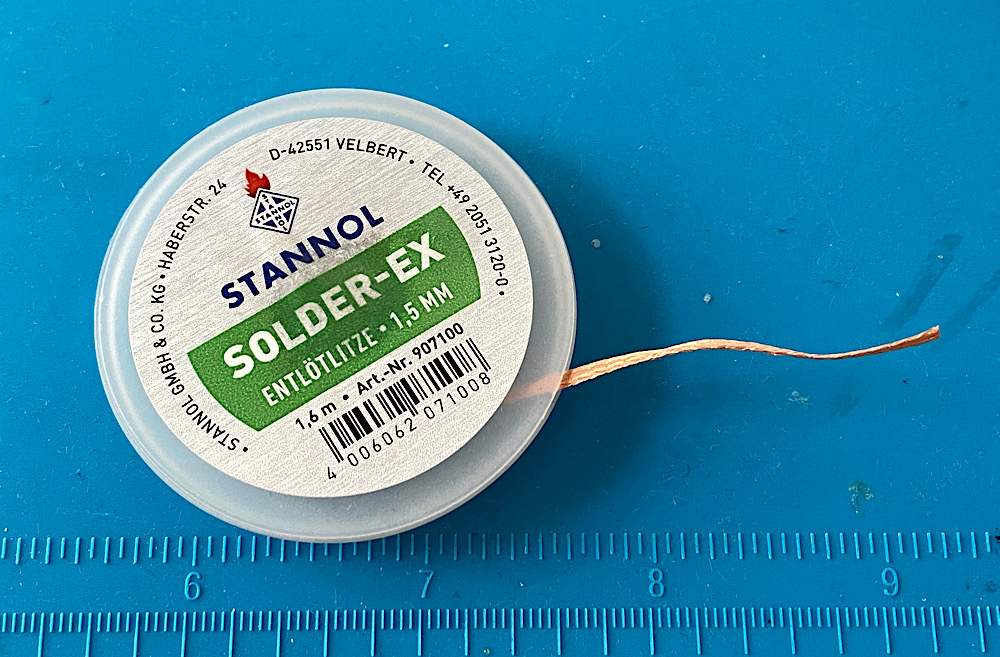 Diese Lotreste entferne ich wieder mit Entlötlitze:
