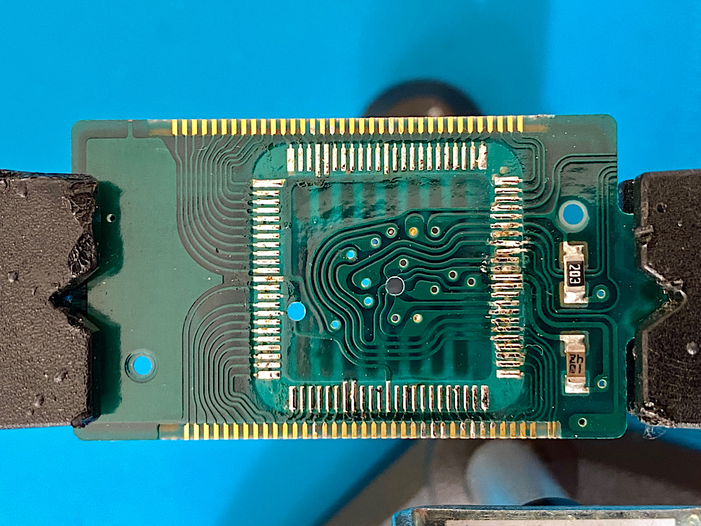 Die Platine mit den Pads, auf denen sich noch Lotreste befinden: