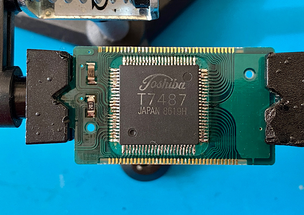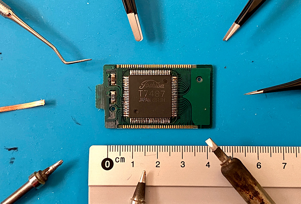Als Kandidaten für den Versuch mussten der mutmaßlich defekte IC und seine Platine herhalten, die ich unlängst aus einer T90 mit Displayfehler herausgeholt hatte.