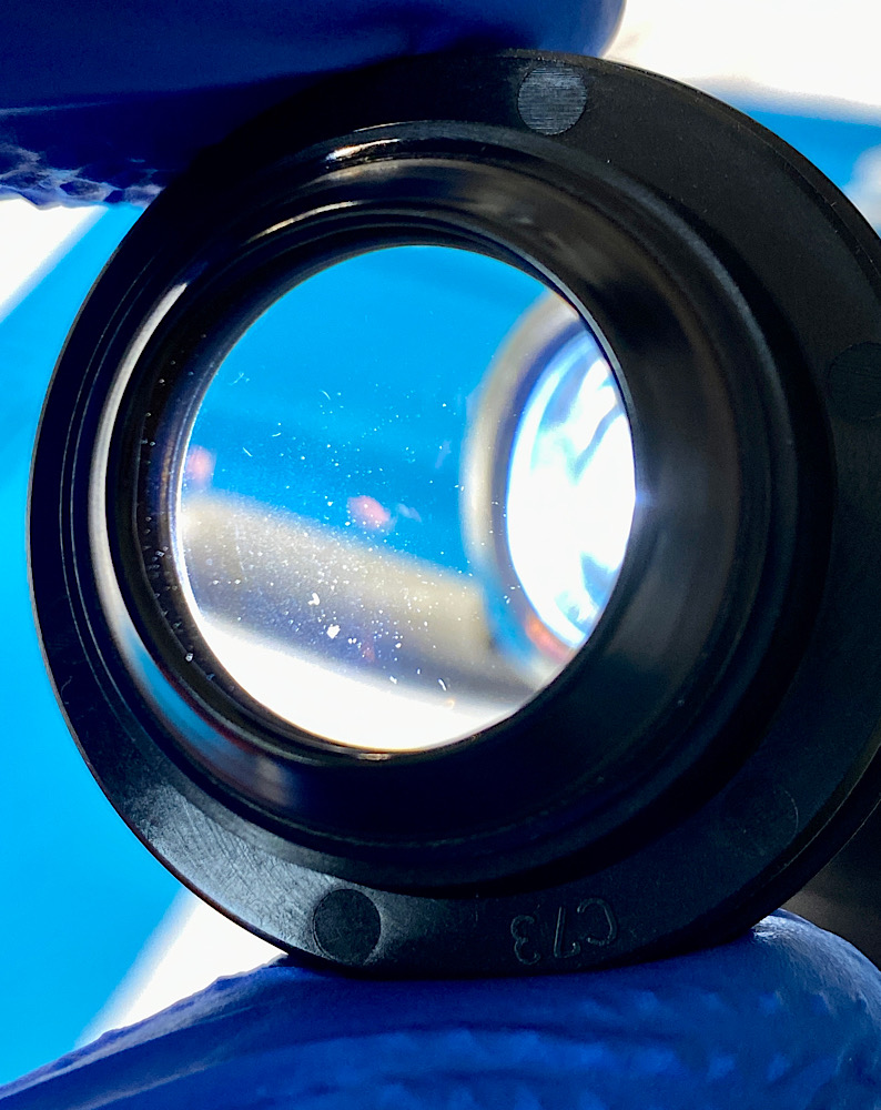 Auf den vorderen Linsen liegt Staub und ein größeres Stück Schmutz, das mich schon seit 15 Jahren stört ;-)