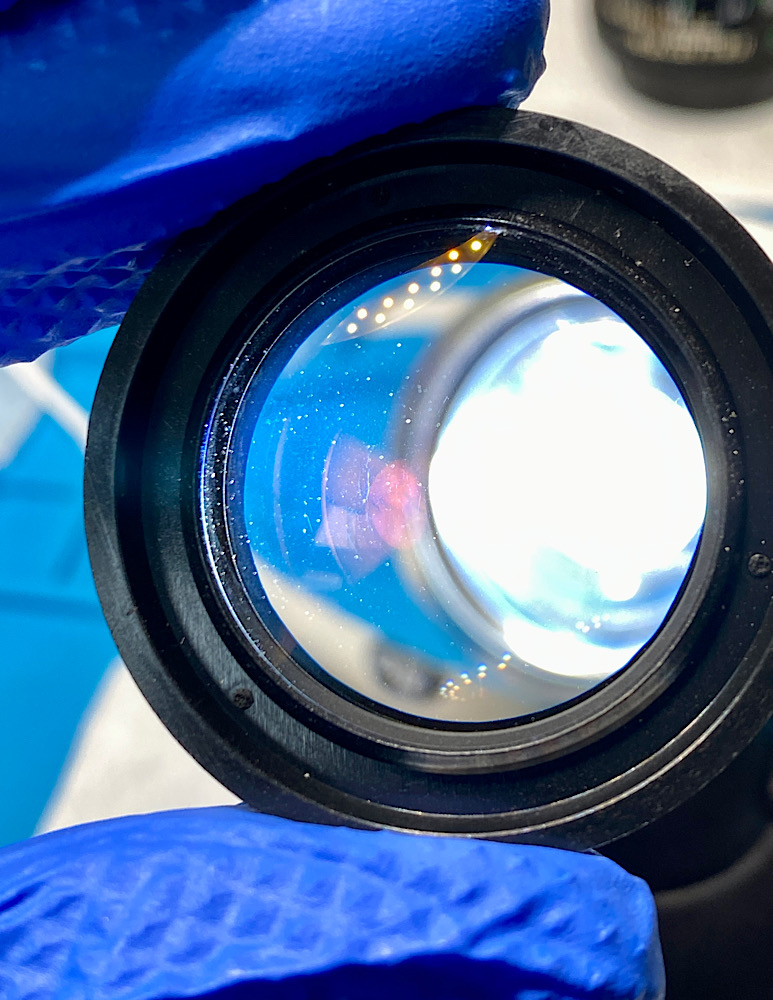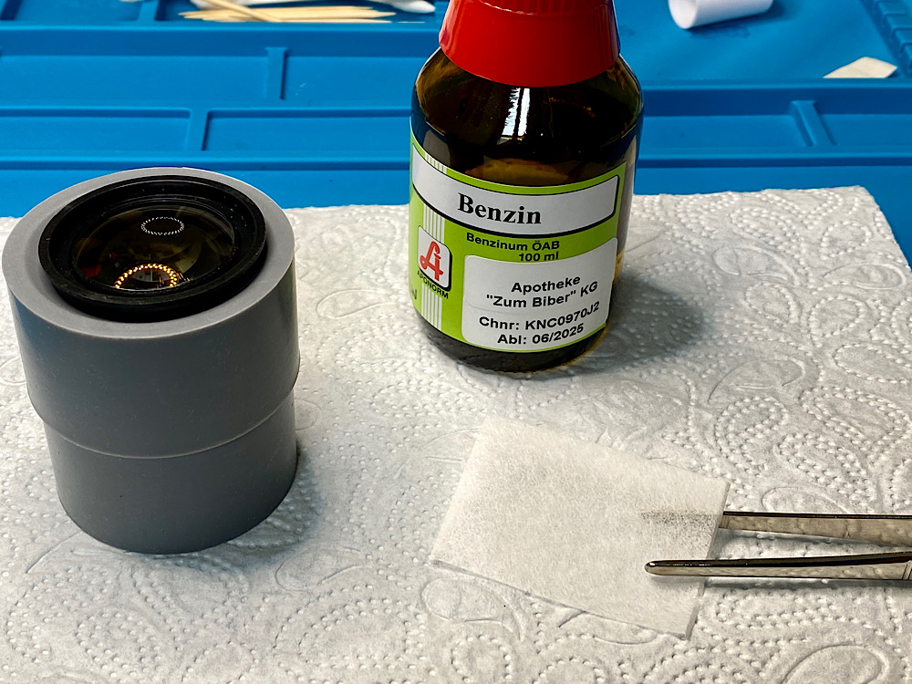 - Ausbau und Reinigung der von der Objektivvorderseite zugänglichen Linsen.