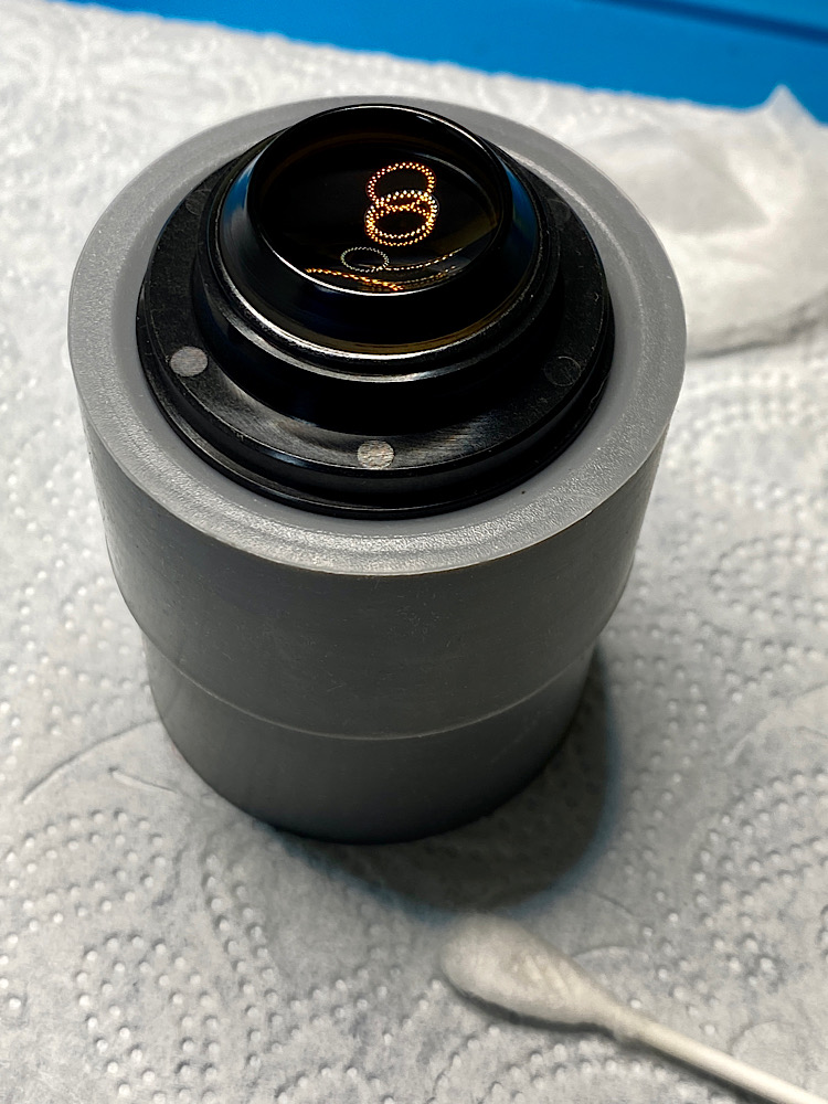 Die vordere Linseneinheit, jetzt weitgehend von Staub und Schmutz befreit :yes: