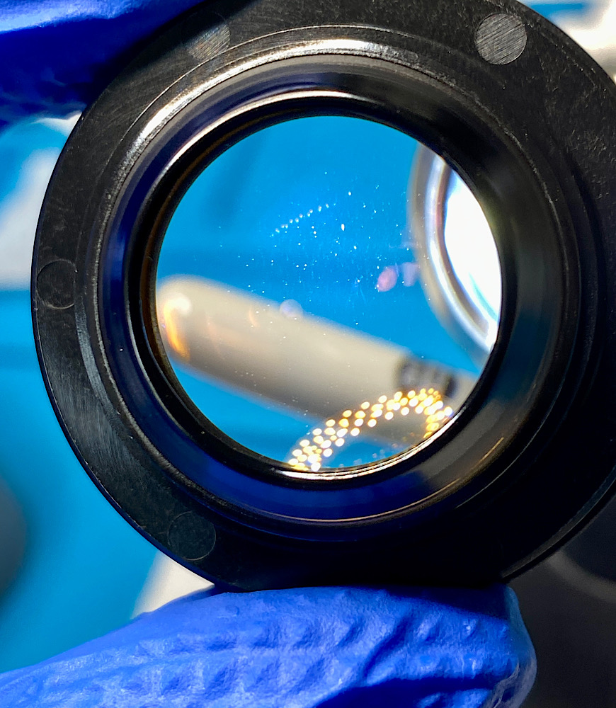 Auch auf den hinteren Linsen liegt Staub.