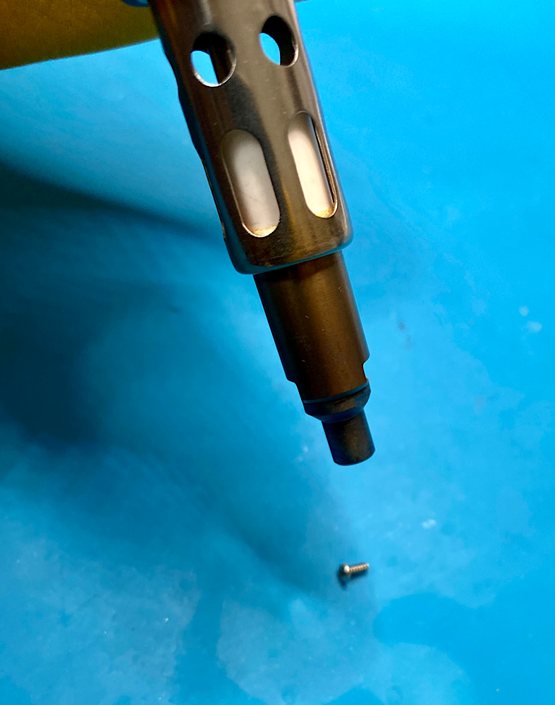 Trocknen werde ich die Schraube mit dem butanbetriebenen Dremel Versatip.