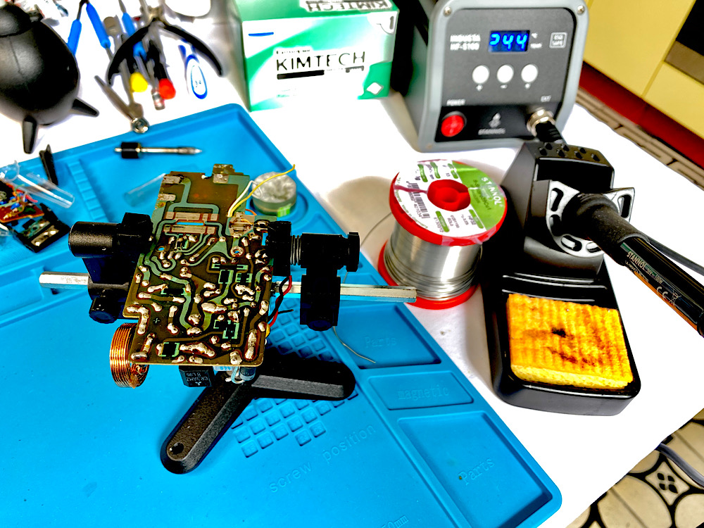 Alles klar zum Auslöten ausgewählter elektronischer Bauteile.