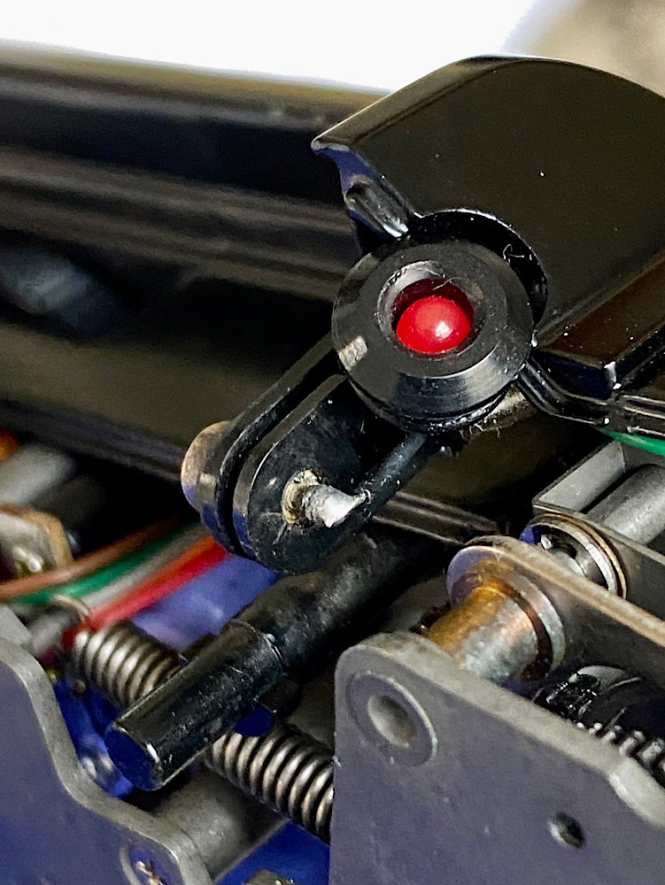 Die abgebrochene Abdeckung des Auslösers klebe ich an.
