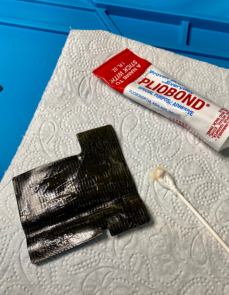Mit Pliobond klebe ich die Leatherette an.