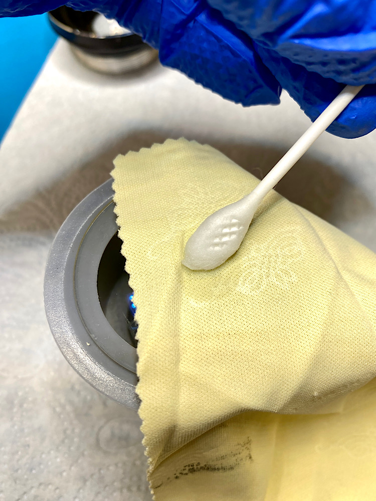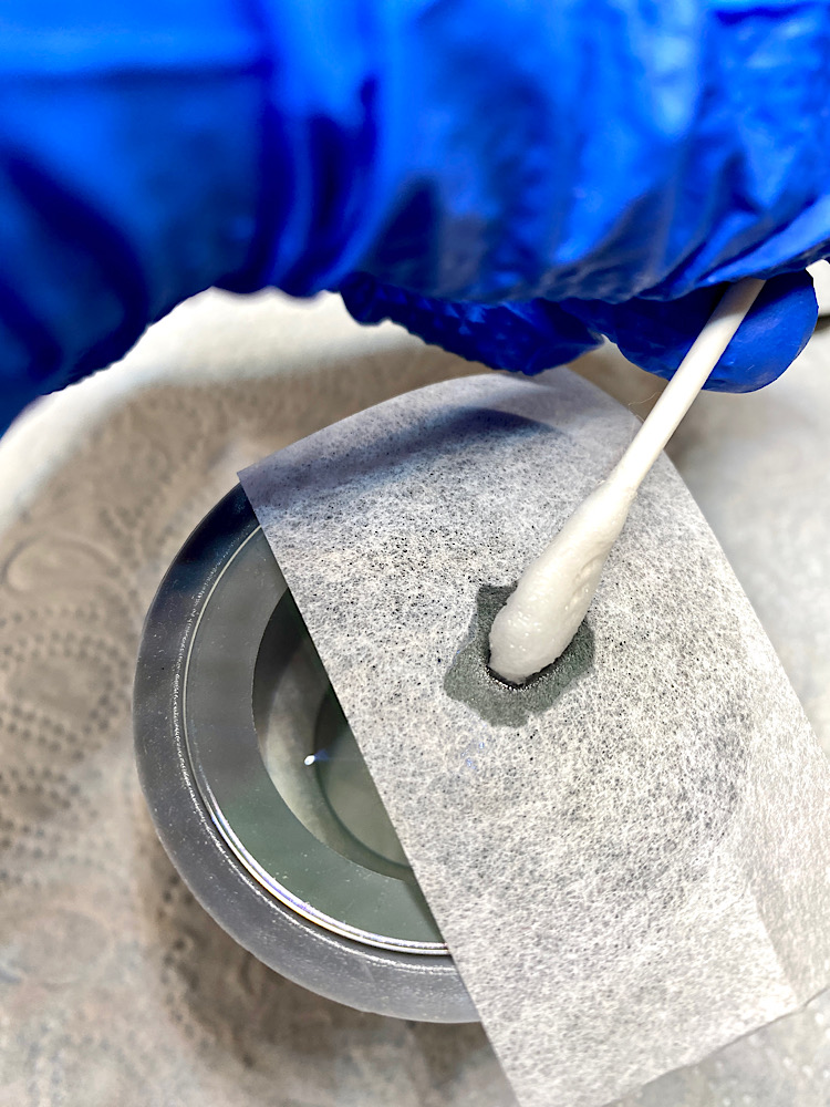 … als zweiter Durchgang Isopropylalkohol auf Optikreinigungstuch.