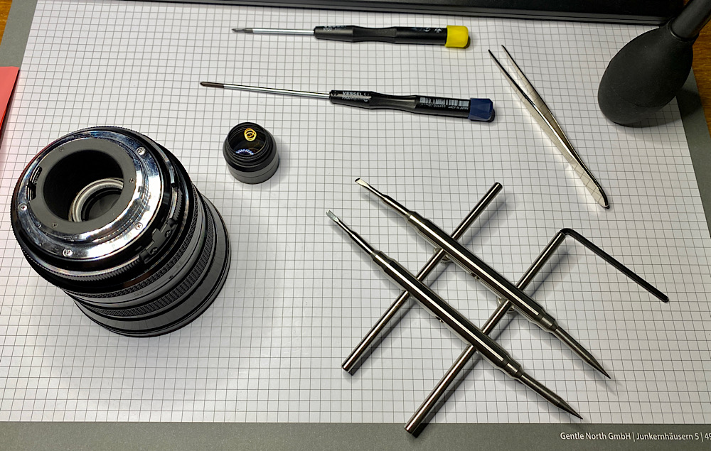 Dem wollte ich gar nicht weiter auf den Grund gehen, war dankbar für den schnellen Fix, schraubte wieder ein und widmete mich den Blendenlamellen.