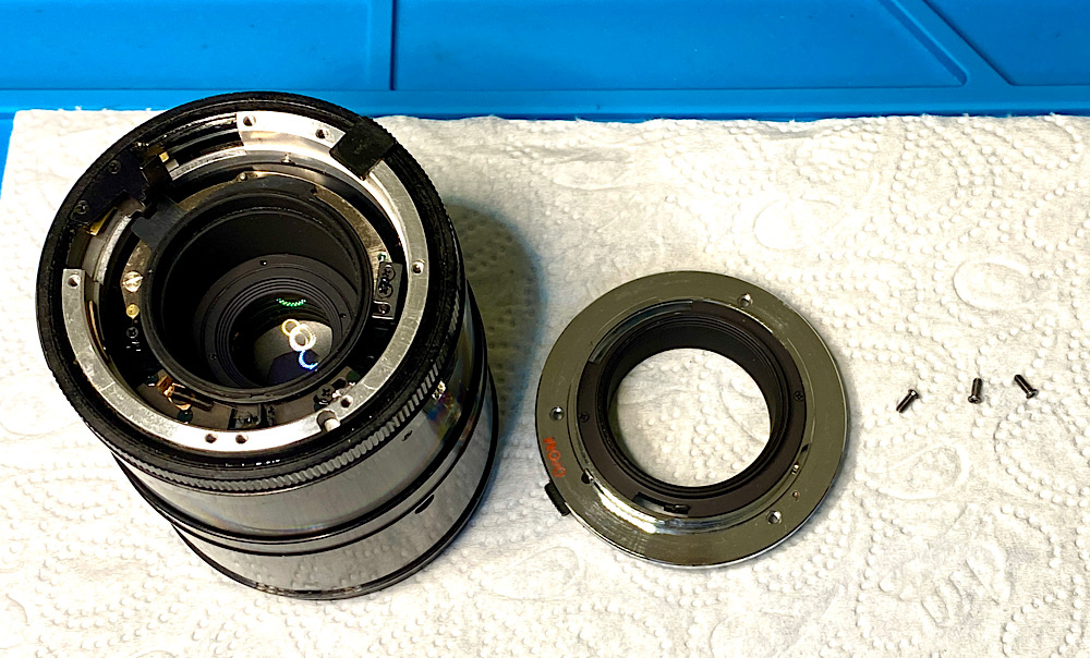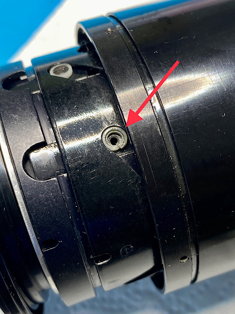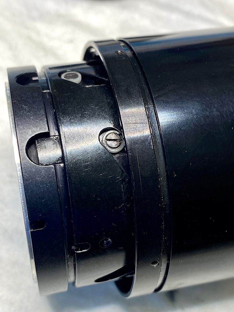 Hier schon mit abgenommener Gummierung des Fokusringes zwecks Erkundung der Verschraubung.