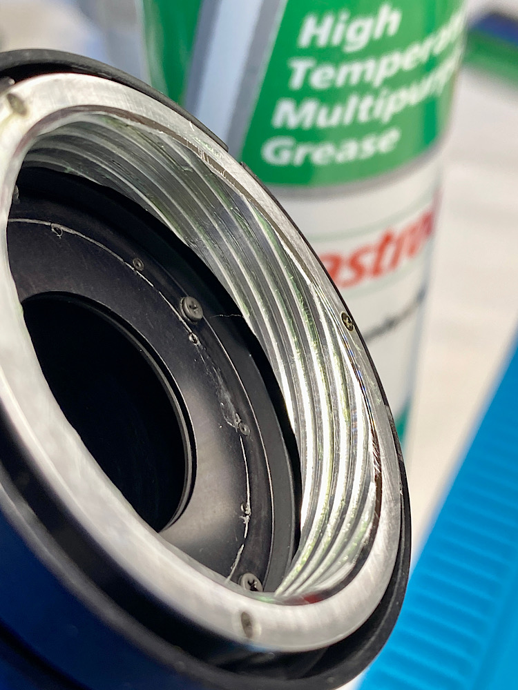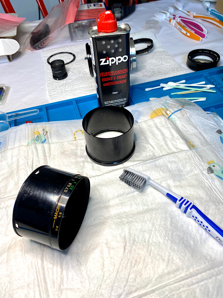 Entfettung der Helicoide-Führungen mit Zippo Feuerzeugbenzin