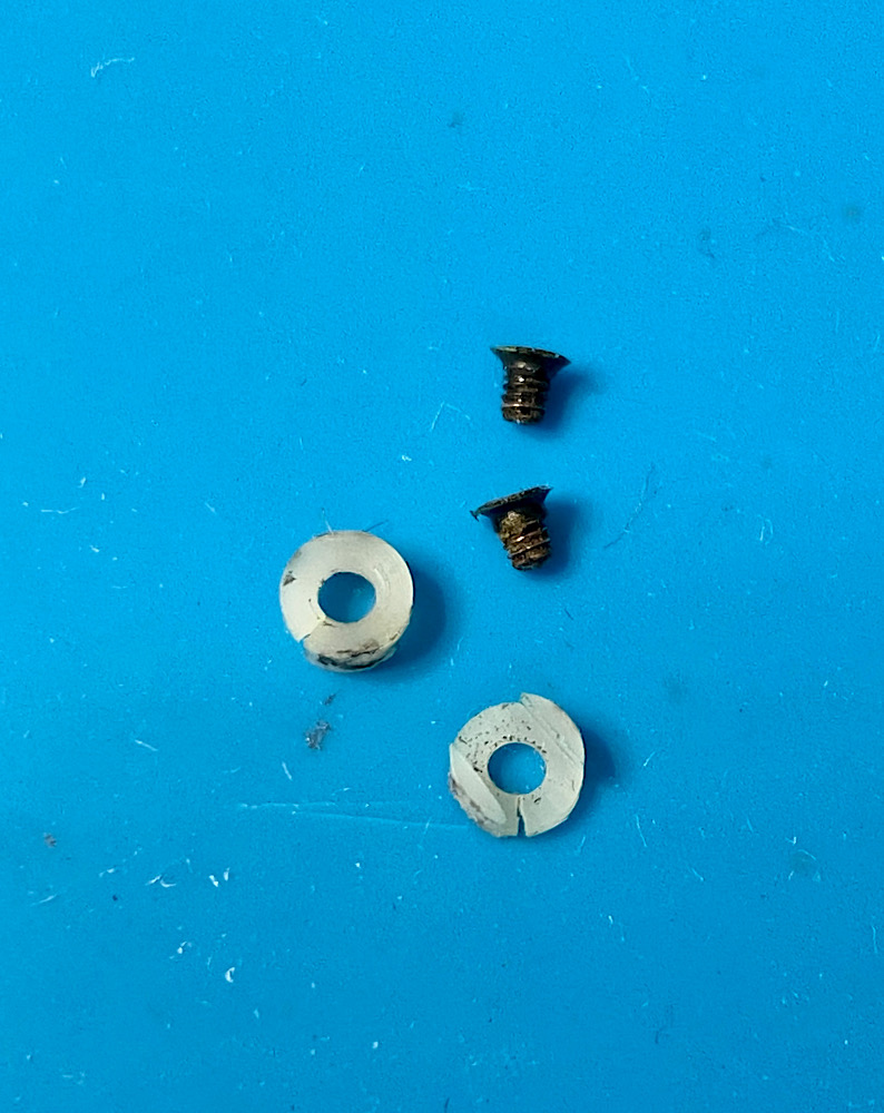 Die beiden beschädigten Gleitlager der Geradeführung.