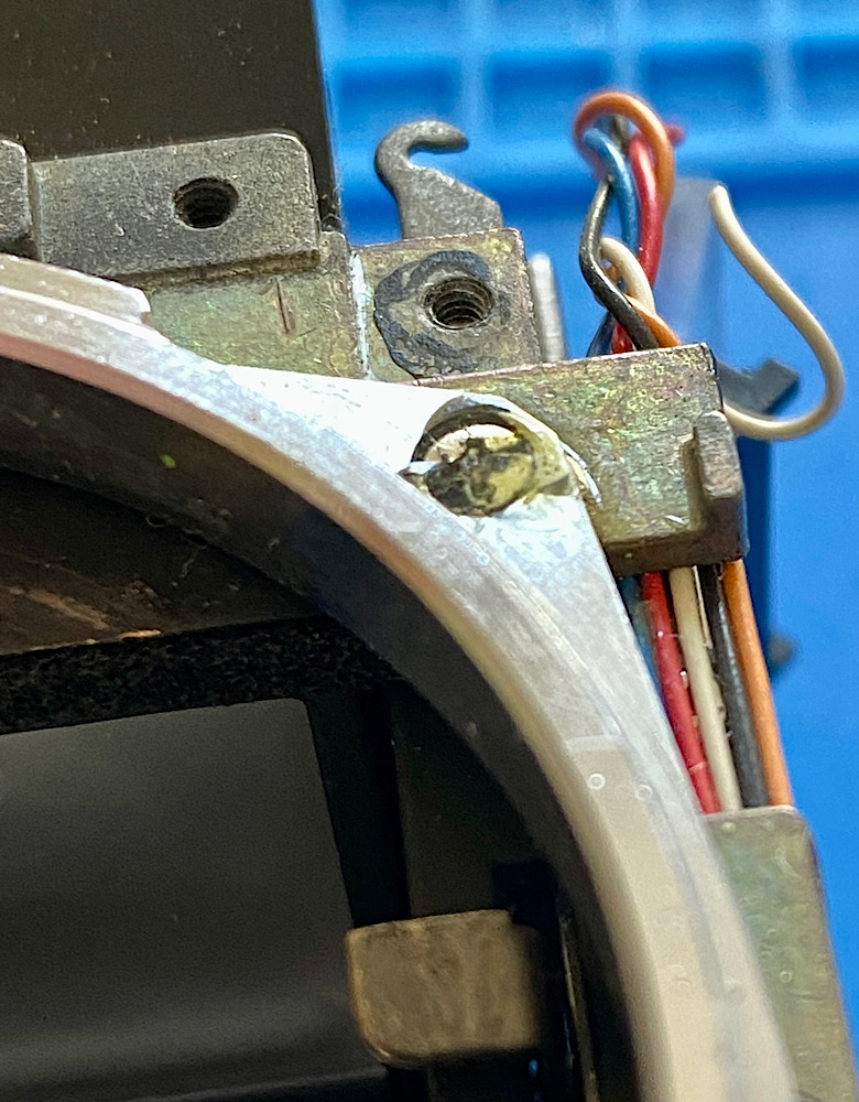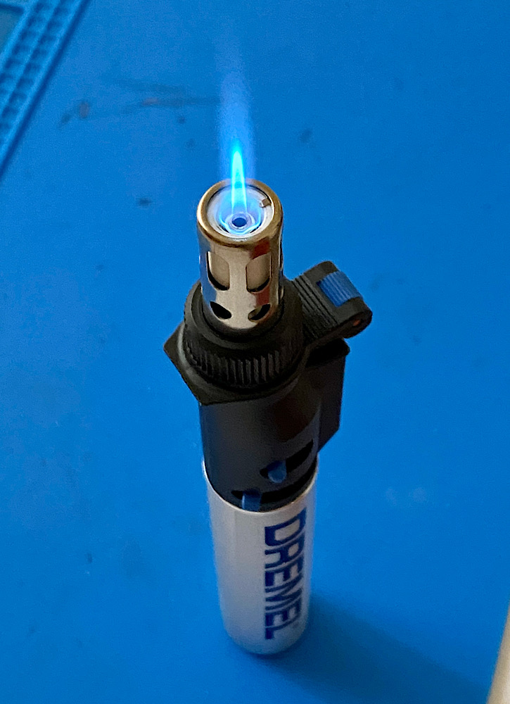 Mit dem Dremel Versatip konnte ich den Überzug abschmelzen und mit einer Sonde soweit wegkratzen, dass ich zwei Schrauben mit dem Schraubendreher herausbrachte.