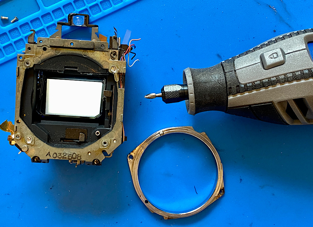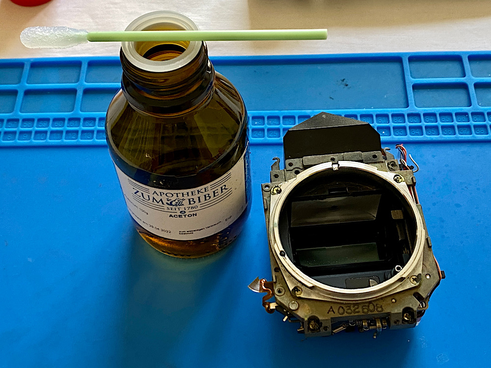 Natürlich war es mit einem simplen Abschrauben des Bajonettringes vom Spiegelkasten nicht erledigt.