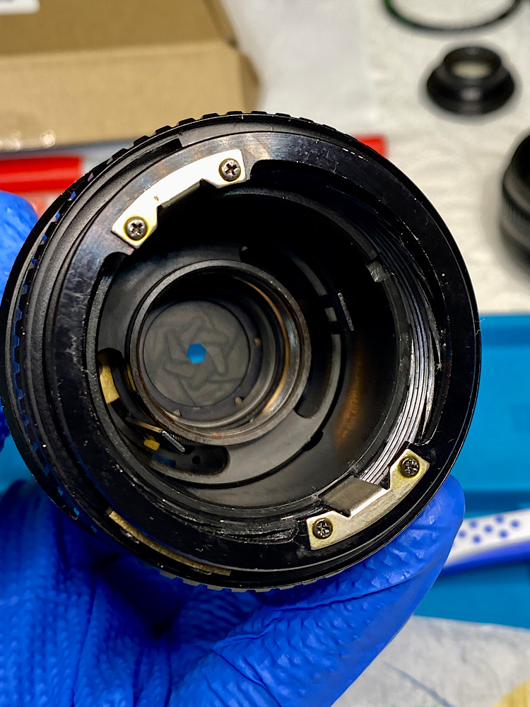 Beim Demontieren habe ich einen Hebel der Blendenmechanik verbogen.