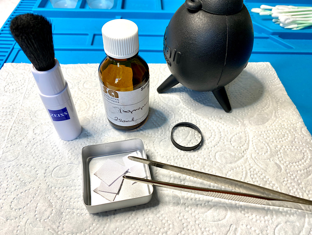 Ausbau der vorderen Linsen, um eine Verunreinigung bei den anschließenden Arbeiten zu vermeiden.