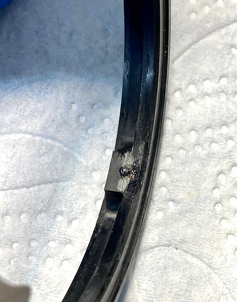 Zum Schluss bemerkte ich, dass der rote Markierungspunkt für das Einsetzen des Objektivs in die Kamera fehlt.