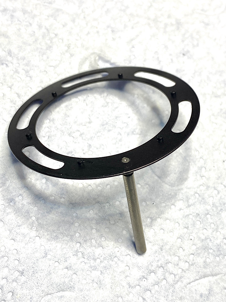 Der „neue“ Übertragungshebel, fest und gerade eingenietet in den Abdeckring des Blendenregisters wie es sein soll.