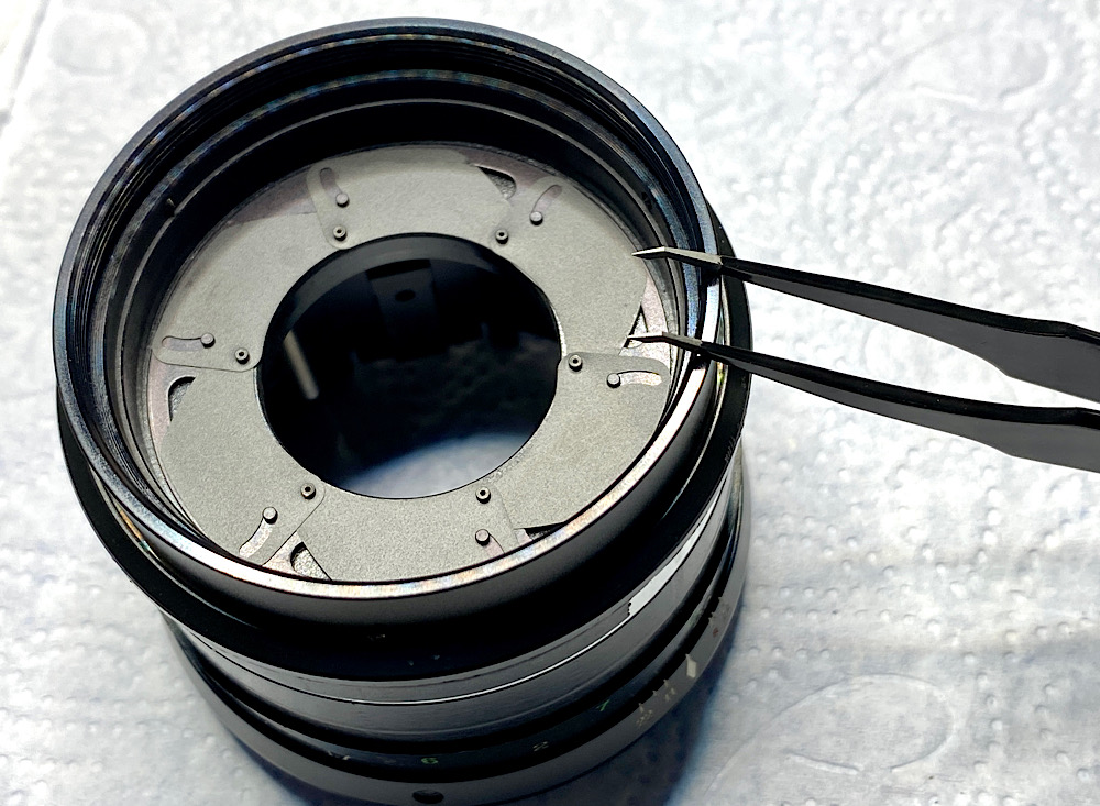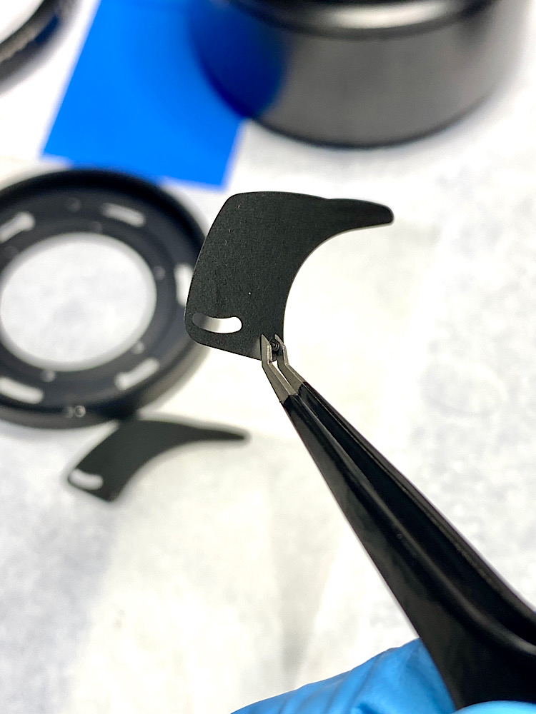 Damit wird auch diese leicht eingedellte Blendenlamelle getauscht.