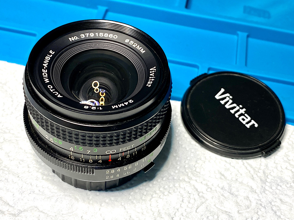 Heute war aus dem Konvolut defekter Objektive, das ich vor einiger Zeit erstand, das Vivitar 2.8/24mm Auto Wide-Angle Kandidat für eine Verbesserung.