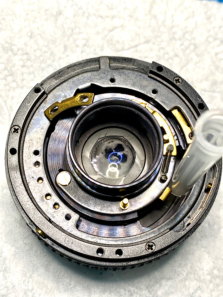 Wie immer reinige ich den Blendenring und die Blendenraste von Öl und Fettresten.