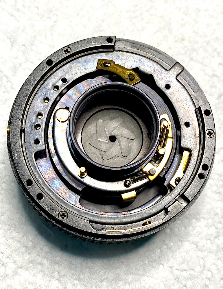 Weitere Details der Blendenmechanik werden sichtbar, was hilft, den Mechanismus zu verstehen.