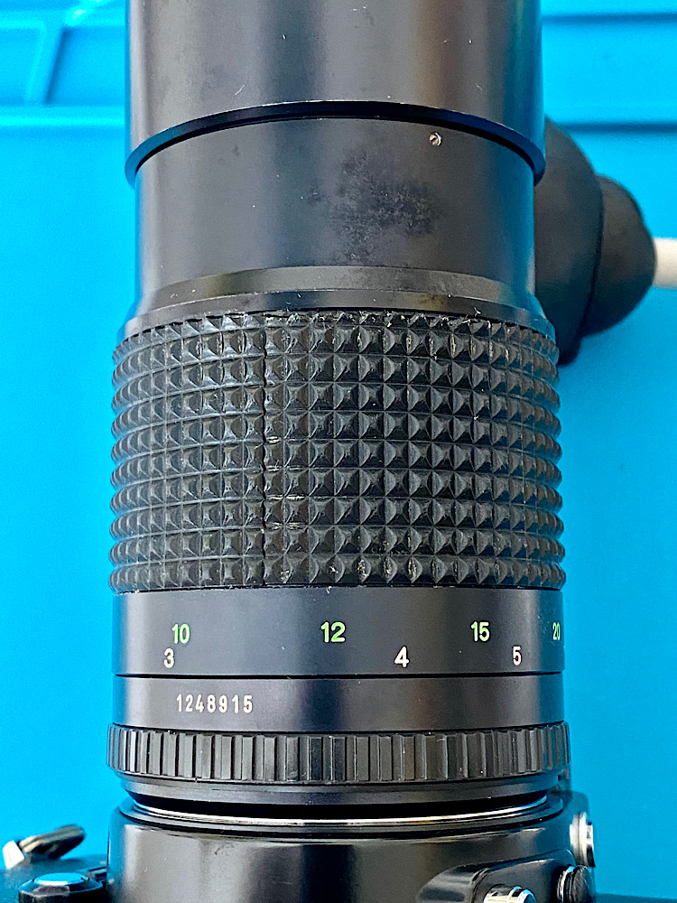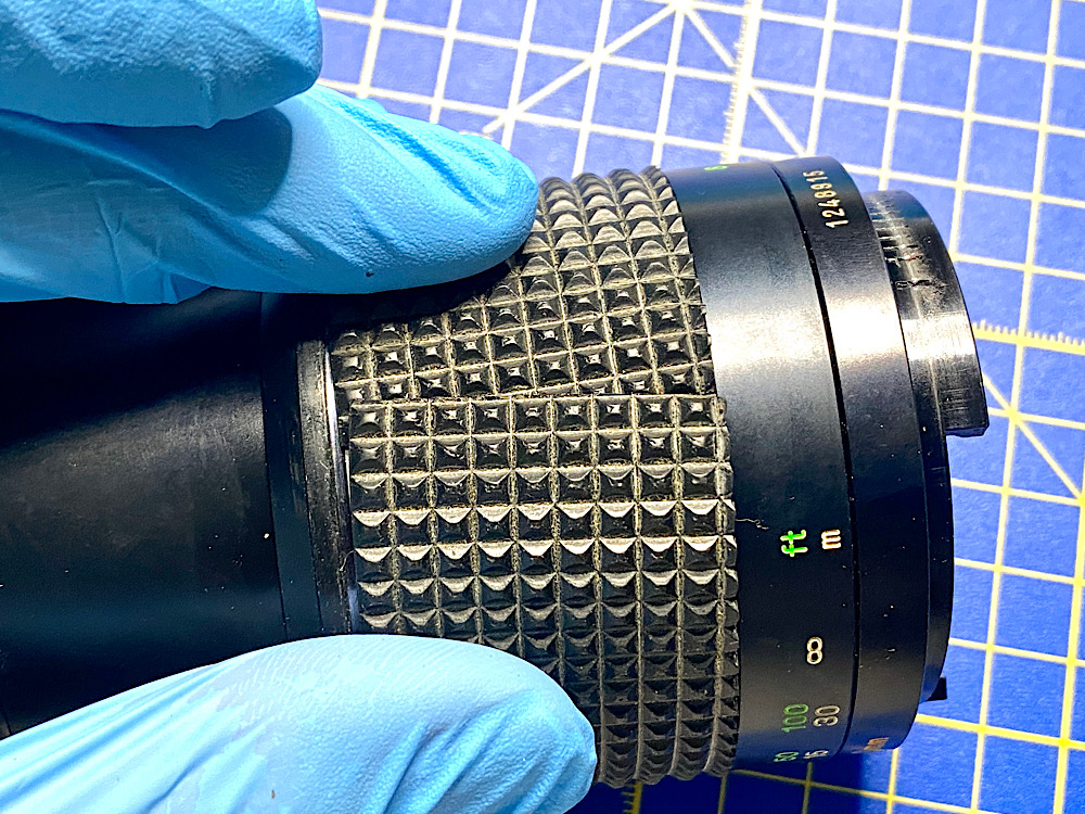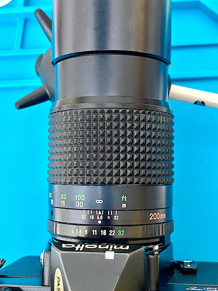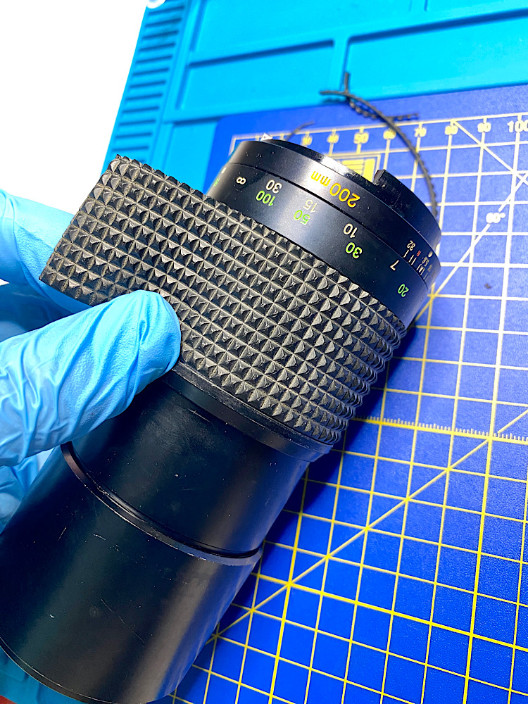 Minolta MD 4/200 Tele Rokkor: Gummierung am Fokusring angepasst, Optik gereinigt