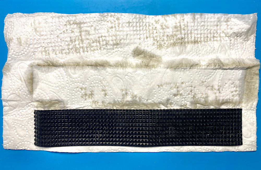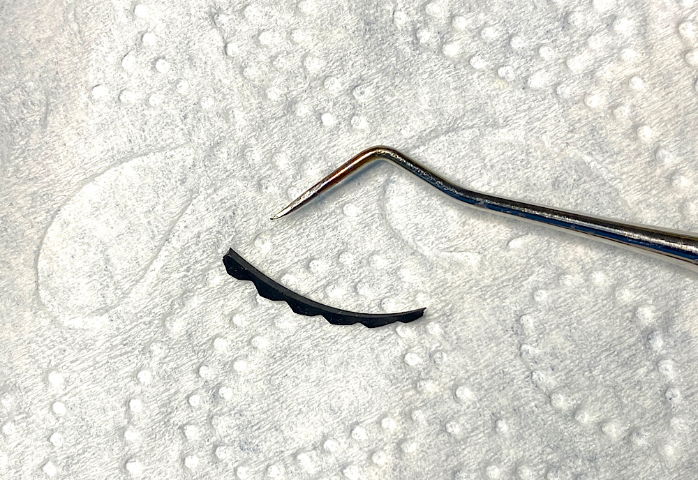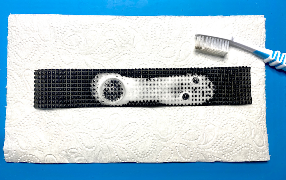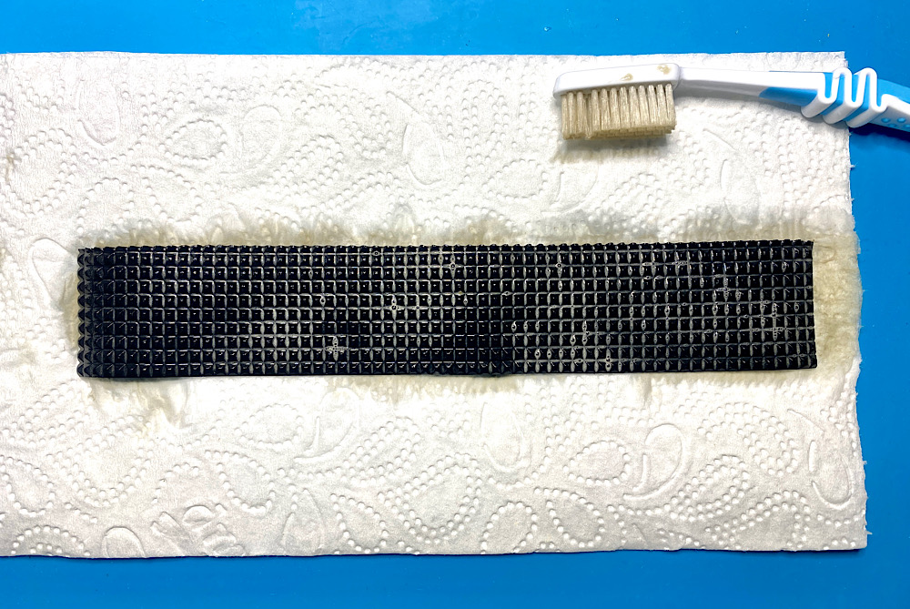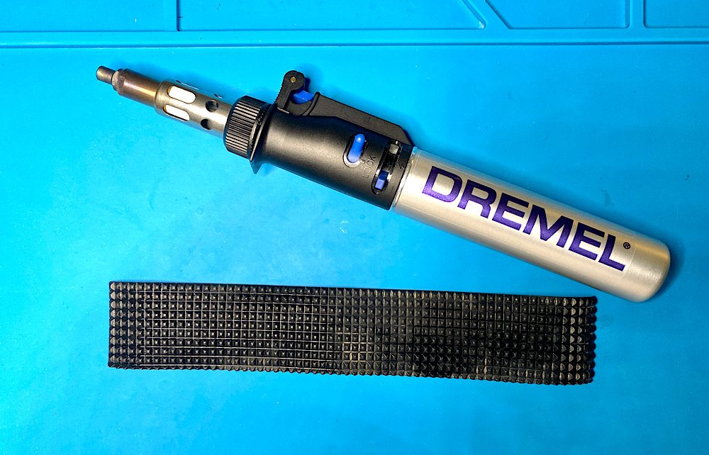Nach dem Abspülen mit Wasser trocknete ich den Streifen mit dem Dremel Versatip.