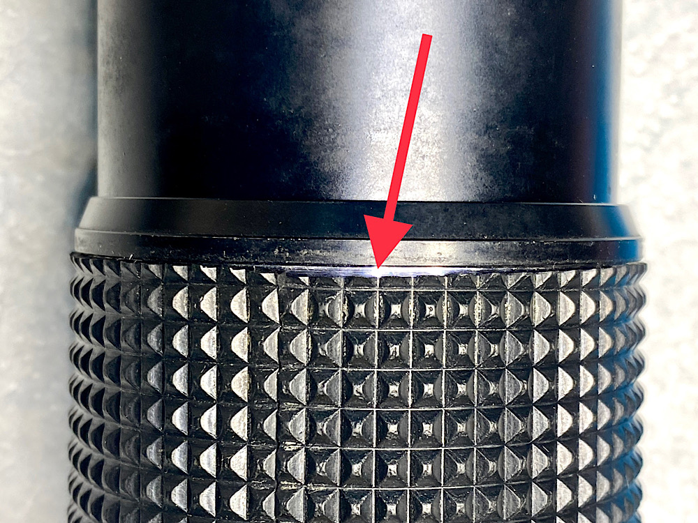 war überdehnt und schloss nicht mehr bündig mit ihrer Führung. Vermutlich Effekt des starken Gebrauchs, da auch am Tubus außen Abnutzungsspuren zu erkennen sind.