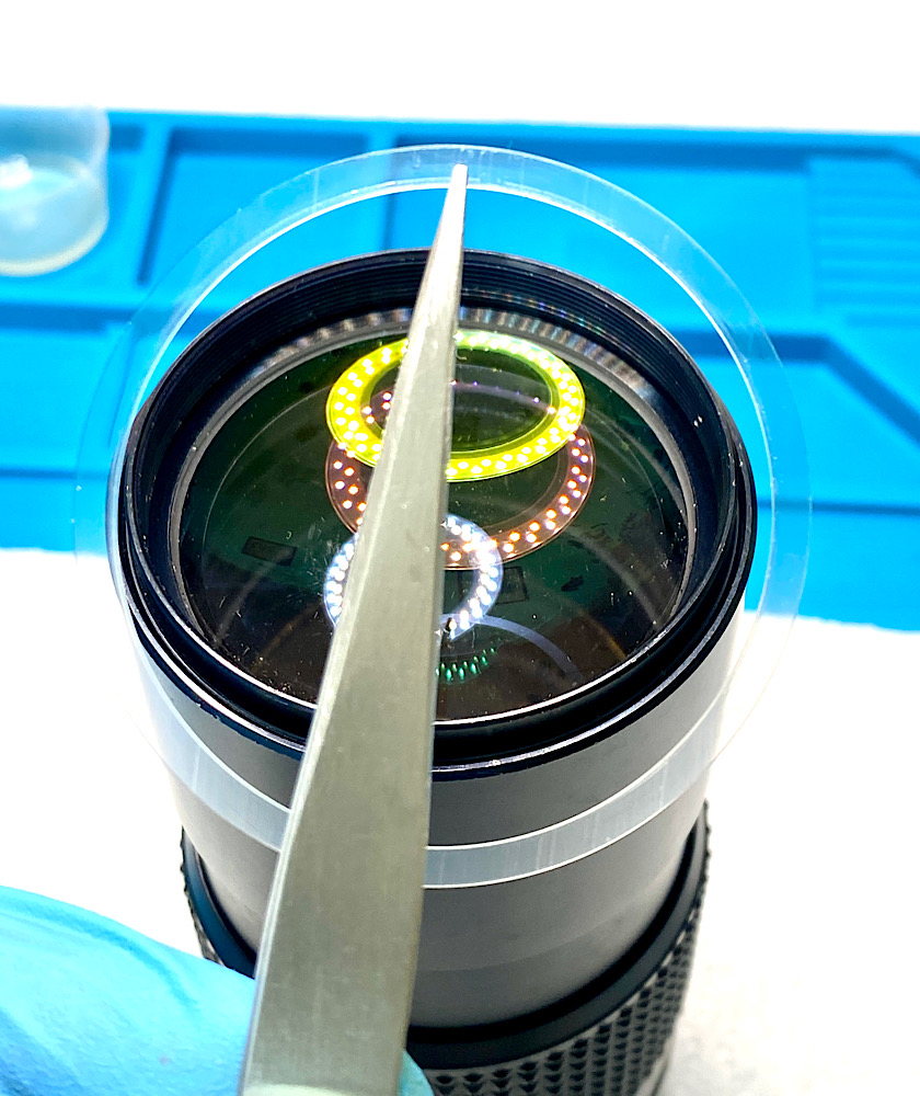 Hier ist Endstation, Fussel unter dieser Linse konnte ich nicht entfernen. Dazu müsste ich das Objektiv weiter zerlegen, was nicht dafürsteht.