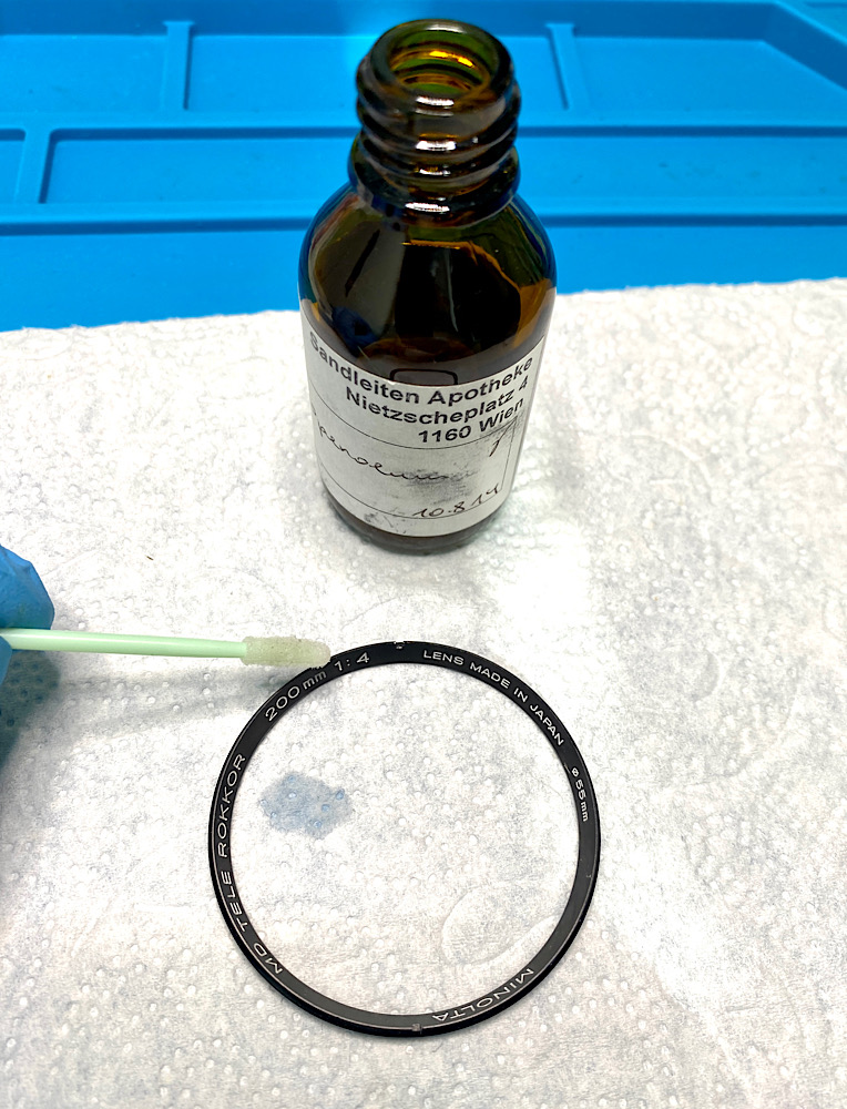 So nützlich seine Eigenschaften als Kriechöl sind, wenn es um das Lösen festsitzender Ringe geht, so unerfreulich wäre eine weitere Wanderung auf die optischen Elemente.