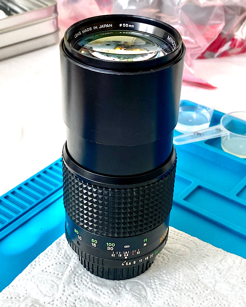 „Minolta MD Tele Rokkor 200/4 (II): Linsen gereinigt, Schwergängigkeit behoben“