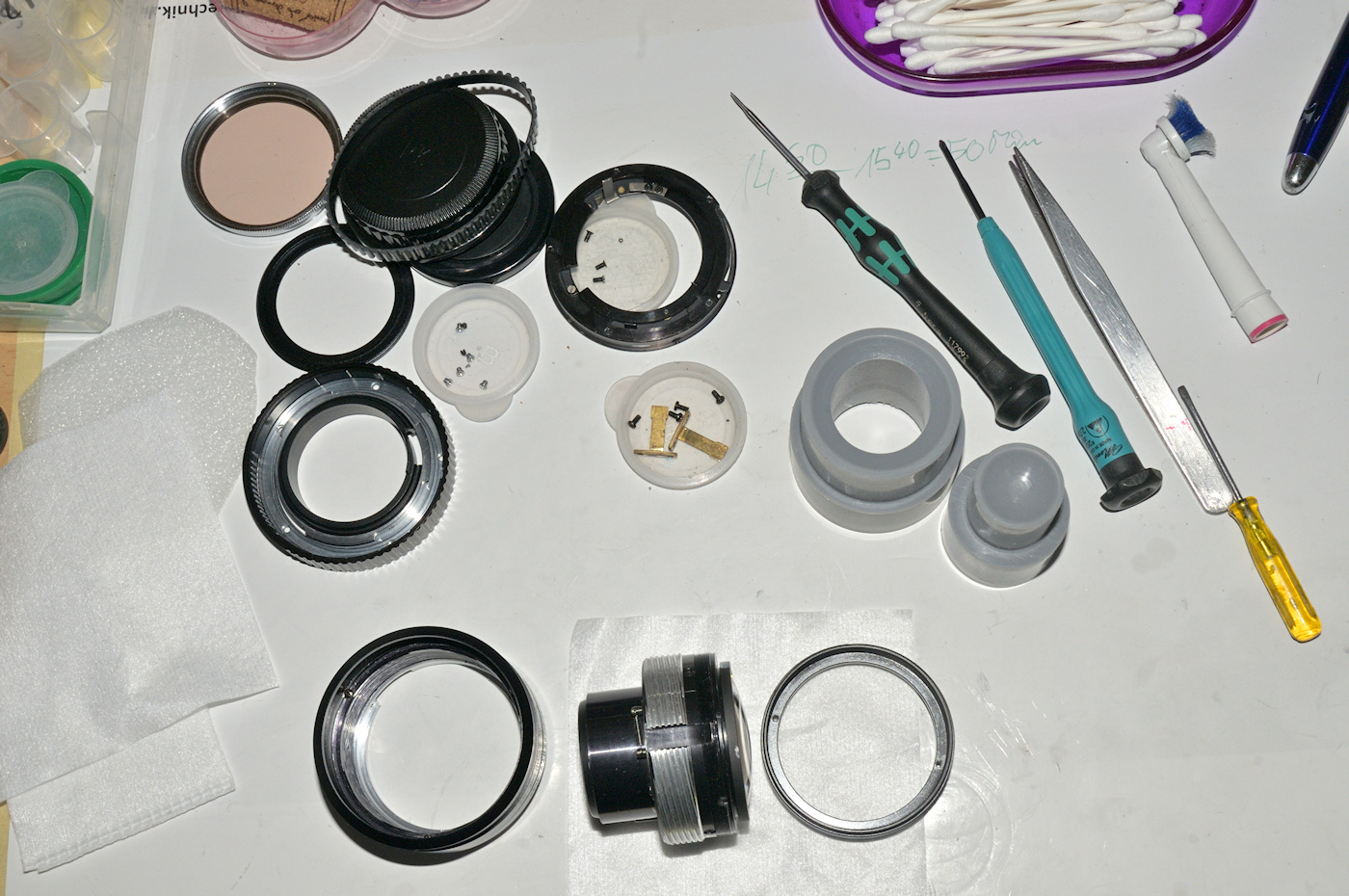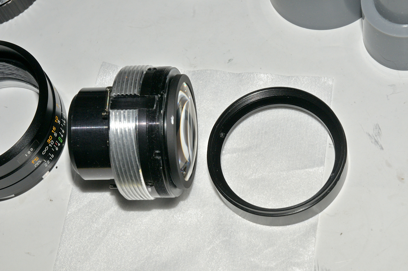 Ich bin fast verzweifelt daran, da sich weder die Hinterlinsengruppe einfach aus ihrer Verklebung im Tubus (trotz Aceton und Kriechöl drehte sich erst mal nur die hinterste Linse in ihrer Fassung, die Fassung blieb wie zementiert fest) heraus drehen,